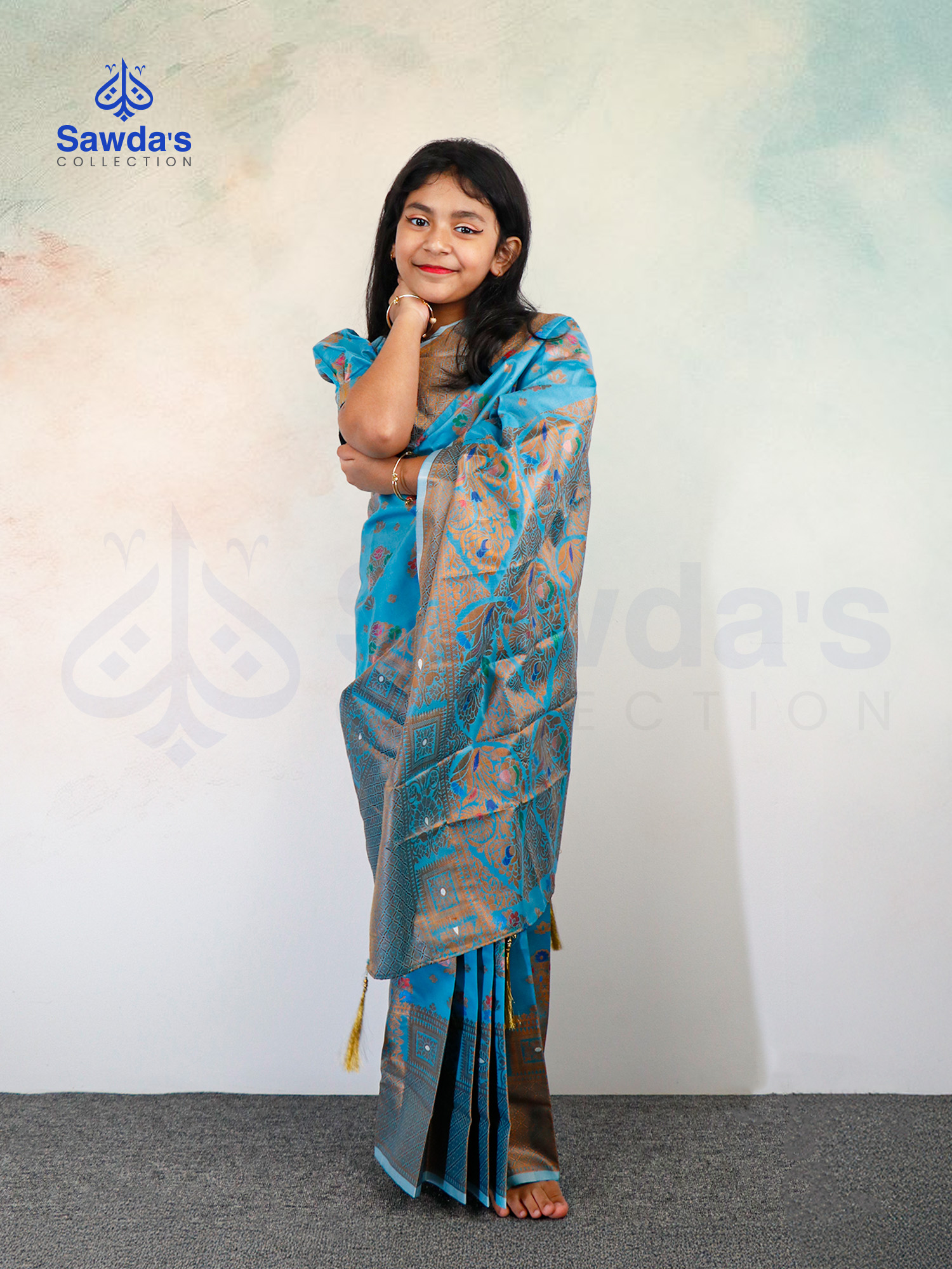 ** জন্মদিন, গায়ে হলুদ, বিবাহ অনুষ্ঠান সহ যে কোন পার্টিতে আপনার আদরের সোনামনি কে সাজিয়ে তুলুন রাজ কন্যার সাজে,। শাড়ির সাথে কুচি ফিটিং পেটিকোট অ্যাডজাস্ট সাথে থাকছে সুন্দর একটি ব্লাউজ।
